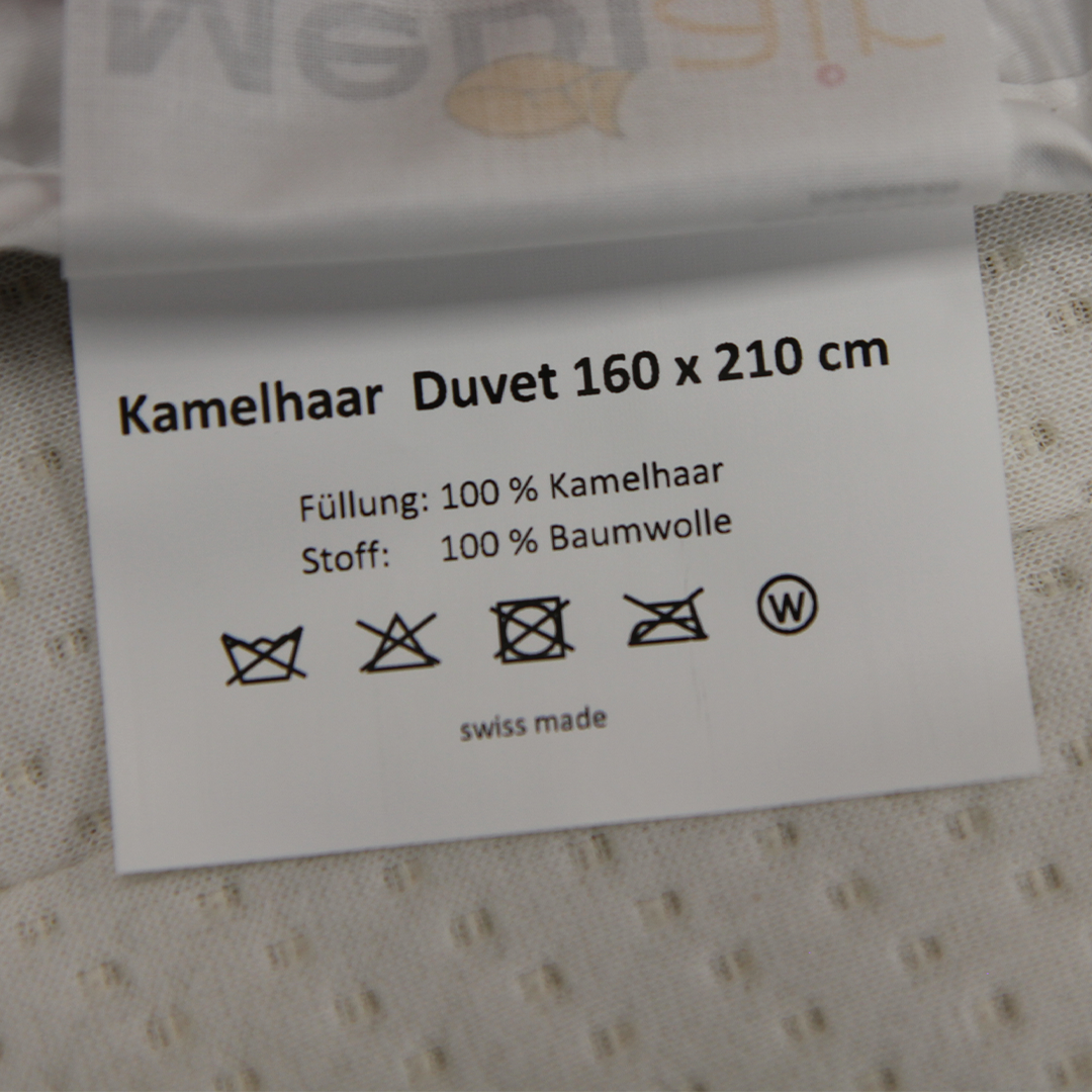 100% Kamelhaarfüllung – leicht, temperaturregulierend, feuchtigkeitsausgleichend