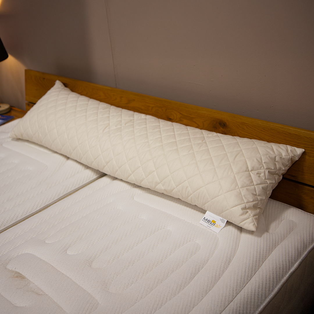 Das Kissen Dufourspitze vereint hochwertige Naturmaterialien mit einem besonderen Format: Mit seinen 40×140 cm bietet es eine grosszügige Liegefläche über die gesamte Bettbreite – ideal für alle, die sich gerne in ihr Kissen einkuscheln oder eine durchgehende Unterstützung für Kopf, Nacken und Schultern wünschen.