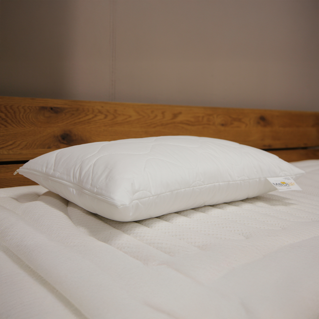 Das Kissen Pilatus steht für höchsten Schlafkomfort und Schweizer Handwerkskunst. In mehreren Schichten aufgebaut, kombiniert es sorgfältig ausgewählte Materialien für eine optimale Stützfunktion und ein angenehm weiches Liegegefühl. Die leicht gewellte Aussenhülle besteht aus reiner, weisser Baumwolle mit einer feinen Polyesterfüllung und sorgt für ein hygienisches, trockenes Schlafklima.