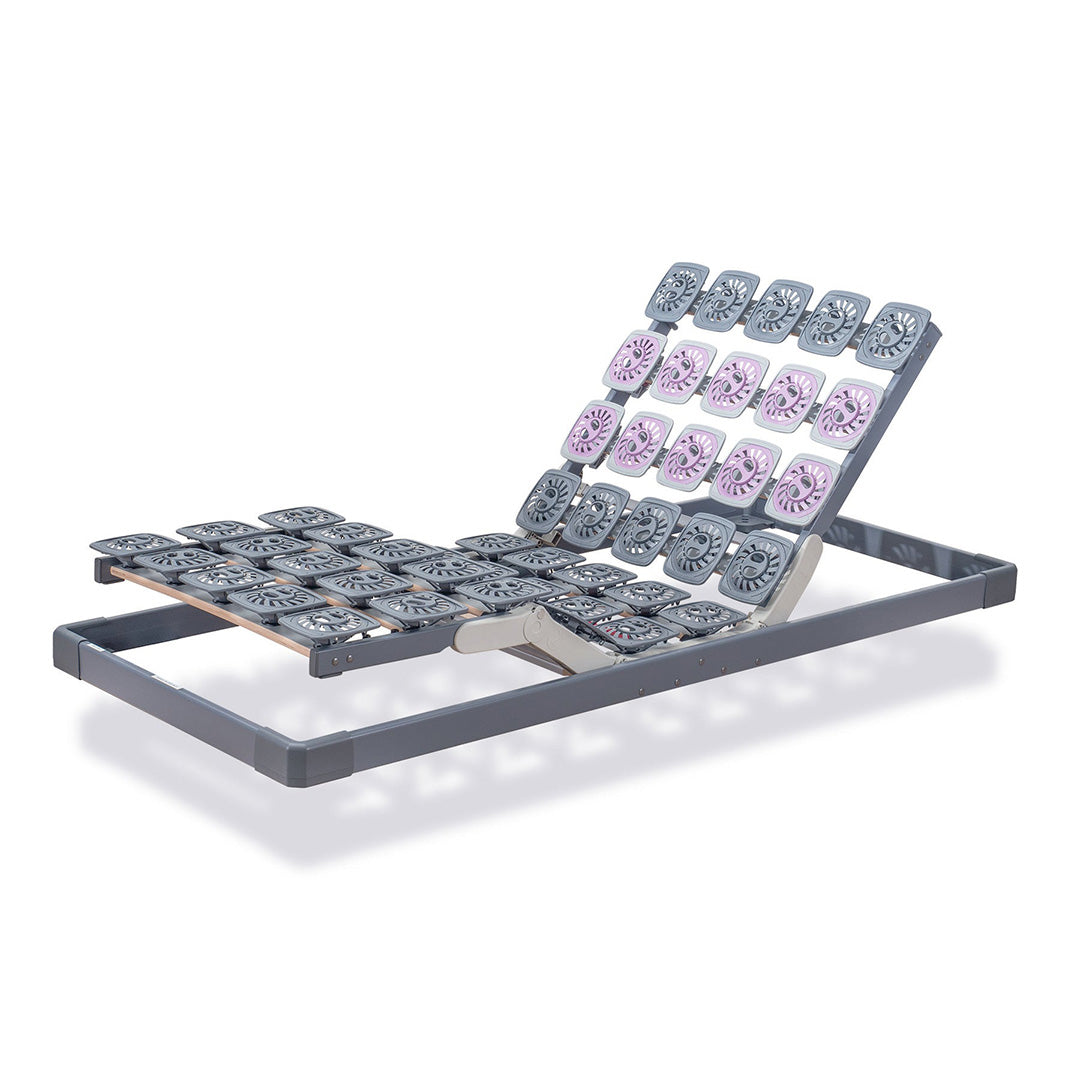 2-motorisch verstellbar mit Flachmotor und Funkfernbedienung, 2 Reihen individuell fixierbare Schulterabsenkung, individuell verstellbare Tellerelemente, Netzfreischaltung, 11,5 cm Gesamthöhe